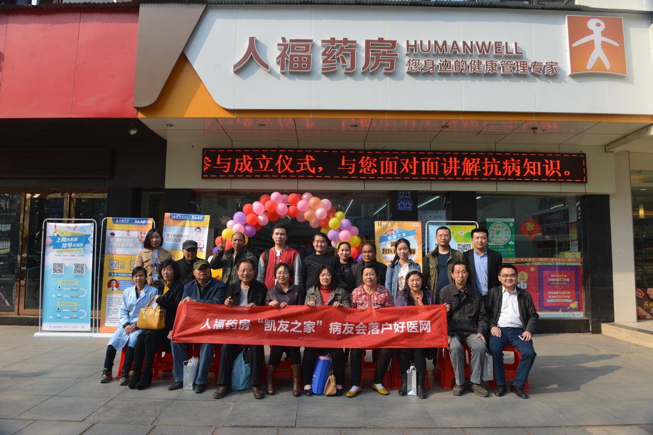 据李佳总经理介绍,为更好的服务于肺癌患者,搭建肺癌患友分享健康咨询、病后生活、治疗经验、治疗方法和心路历程的交流平台,人福药房发起湖北地区肺癌病友会,整合患者信息,建立病友圈,鼓励结识患友,相互交流、相互鼓励、相互支持,共享生命的美好。“由于圈内患友多为服用浙江贝达药业生产的肺癌靶向药物“凯美纳”的患者,所以病友们提议将病友会取名为“凯友之家”,既避免了沉重的“肺癌”两个字,又有凯旋的意思,目前九州酷游病友圈活跃度非常高,多为分享治疗经验和交流服药感受,大家互帮互助,互通有无”。