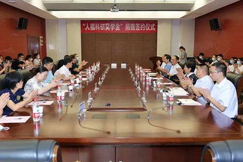 9月8日,“人福科研奖学金”捐赠签约仪式在武汉大学医学研究院隆重举行。宜昌人福药业向武汉大学捐资150万元设立奖学金,奖励全校在读的医学、生物学、药学、化学领域优秀本科生和研究生,并共建校外实习实践基地,以此支持教育事业发展、助力医学研究院建设。