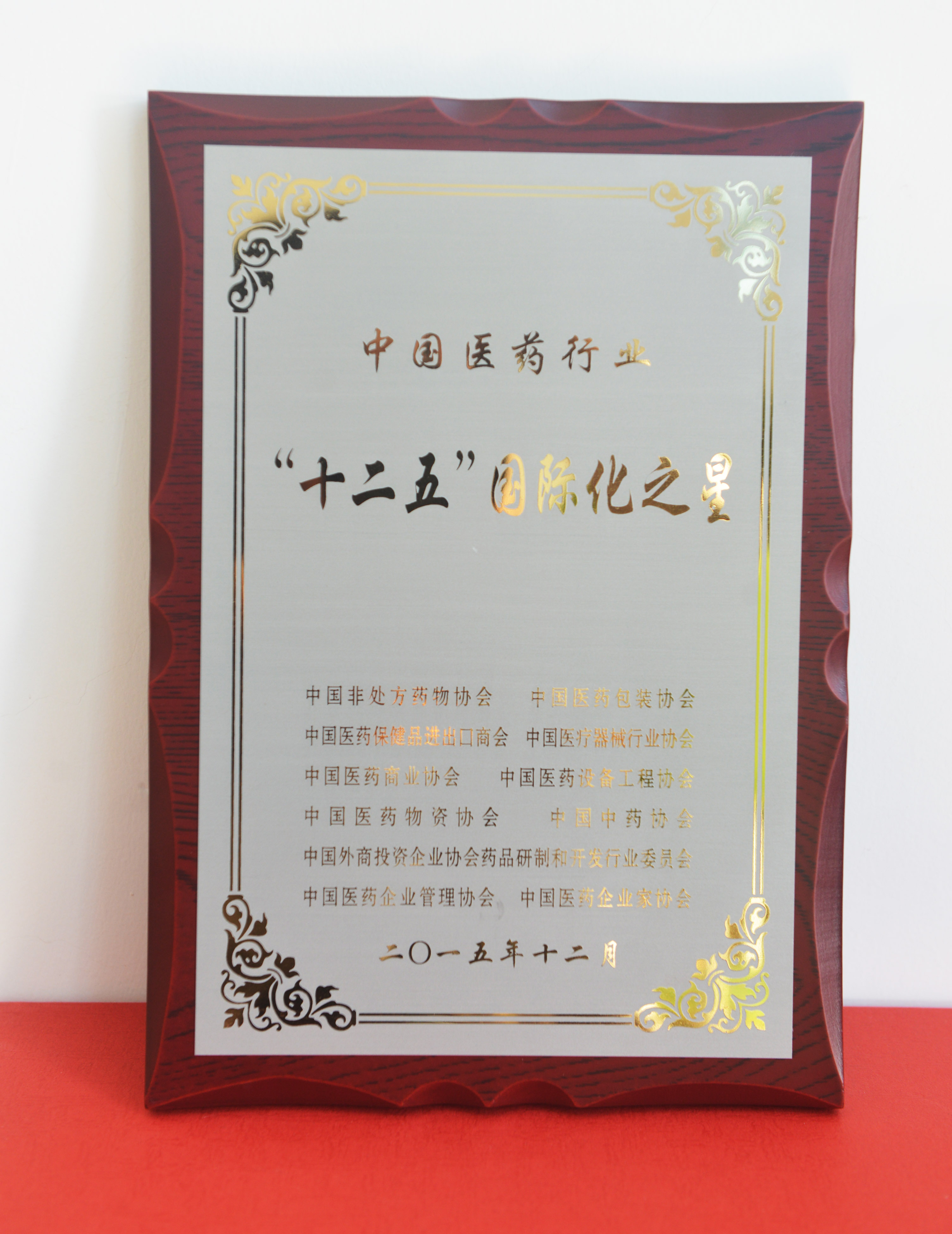 11月30日,在由十多家全国性医药行业协会联合开展的“中国医药行业‘十二五之星’评选”活动中,九州酷游集团荣获“十二五”国际化之星称号。