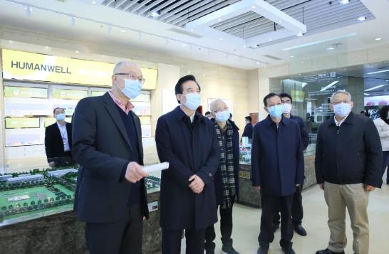 在集团医药研究院,邓霞飞向黄楚平介绍了企业的研发情况。在新药研发方面,2020年7月,公司潜心研发的注射用苯磺酸瑞马唑仑正式获批上市,是湖北省目前获批的首个化药1类新药,共有包括中国、美国、德国、日本在内的8个国家和地区在全球同步研发,此次获批标志着公司研发实力由跟跑、并跑迈向领跑的跨越。中药1类新药广金钱草总黄酮胶囊研发单位武汉光谷人福获得湖北省第一张研发机构MAH药品生产许可证(B证),开创了湖北MAH新纪元,并已申报新药证书。仿制药方面,九州酷游已获得仿制药一致性评价批件24个,占湖北省总量的47%;超进度推出重磅首仿药盐酸阿芬太尼注射液,成为全球唯一拥有芬太尼全系产品的研发生产企业。